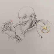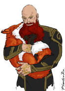 A giant among the Golds, his neck so thick that he can't be strangled, and he has to bend down in order not to hit ceilings. Unlike others, he shaved his head. Has a forked red beard. He is around 7’4 or taller.