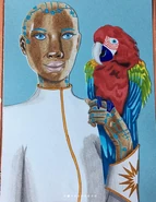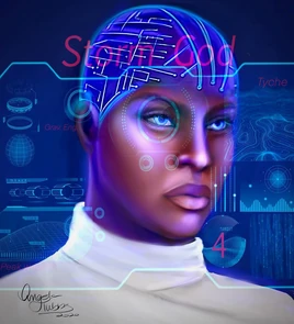 Like most Blues, her head is bald and covered with digiTats, however, not only do they run down her neck, but also her arms and hands as well, pulsing when she interfaces with electronics. She is said to have an olive complexion and a stout appearance. Many equations and formulae are etched onto her skin.