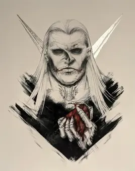 He wears armor that, according to Lyria of Lagalos, is "thick, rough, and jagged, festooned all over with spikes that are almost as long as those that make the crown atop his skull helmet."